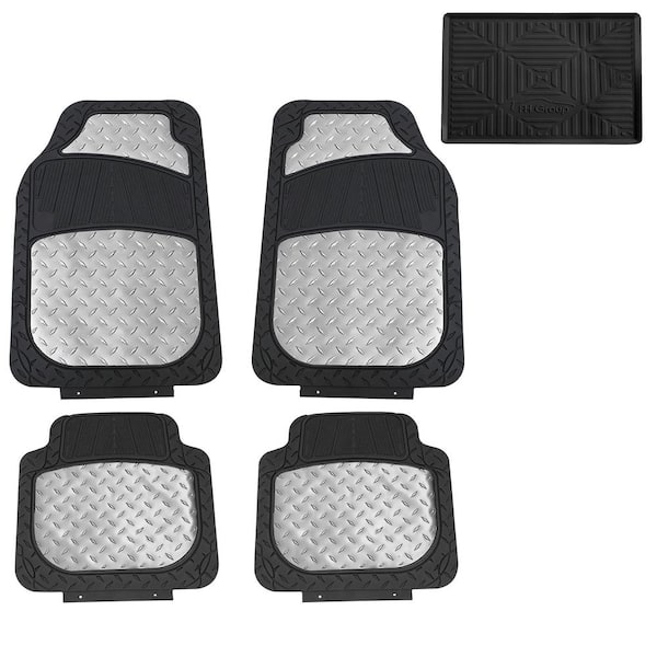 Silver Trimmable Liners High Quality Metallic Floor Mats - Universal Fit for Cars, SUVs, Vans and Trucks - Full Set