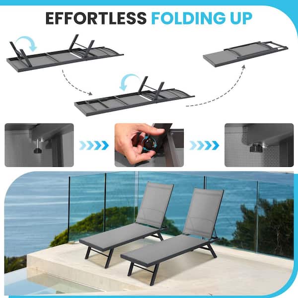 Foldable Aluminum Chaise Lounge Chair Recliner Patio Chaise Lounge for Outdoor