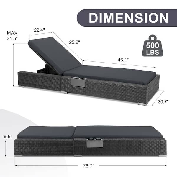 2-Piece Patio Furniture Adjustable Reclining Wicker Outdoor Chaise Lounge with Dark Gray Cushion for Backyard, Deck