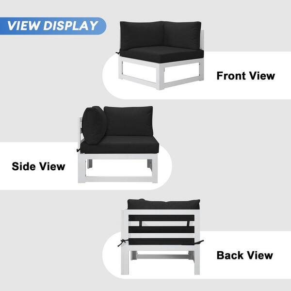 8-Piece Aluminum Patio Conversation Set, 55000 BTU Gas Fire Pit Table Coffee Table Chaise Lounge, Black Cushions