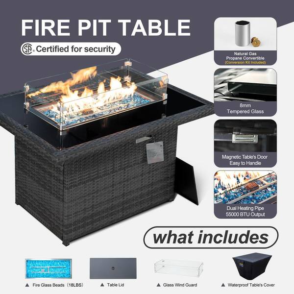 Large Gray 13-Piece 12-Seats Wicker Patio Fire Pit Sofa Set with Light Red Cushions and 43 in. Fire Pit Table