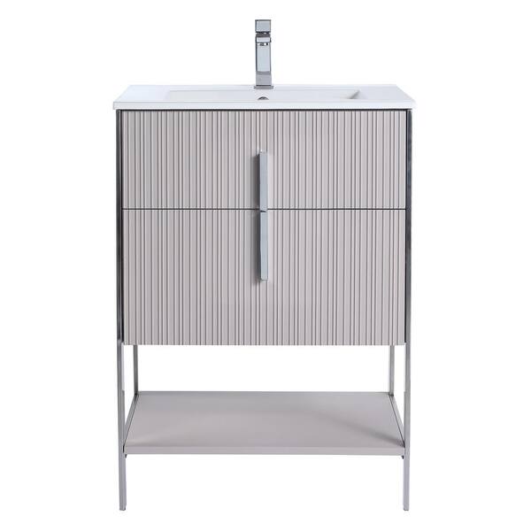 24 in. W x 18 in. D x 33.5 in. H Bath Vanity in Bright Taupe with White Ceramic Sink Top with Chrome Hardware