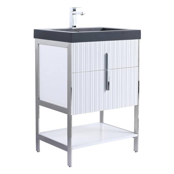24 in. W x 18 in. D x 33.5 in. H Bath Vanity in White with Gel Coated Acrylic Top in Black with Chrome Hardware