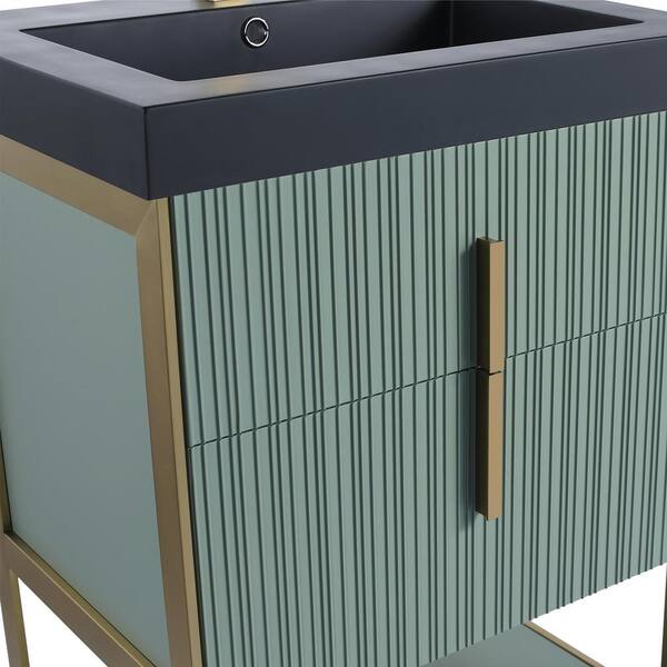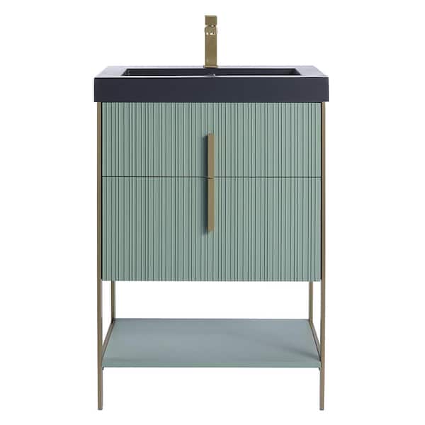 24 in. W x 18 in. D x 33.5 in. H Mint Green Bath Vanity with Black Gel Coated Acrylic Top with Satin Brass Hardware
