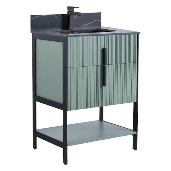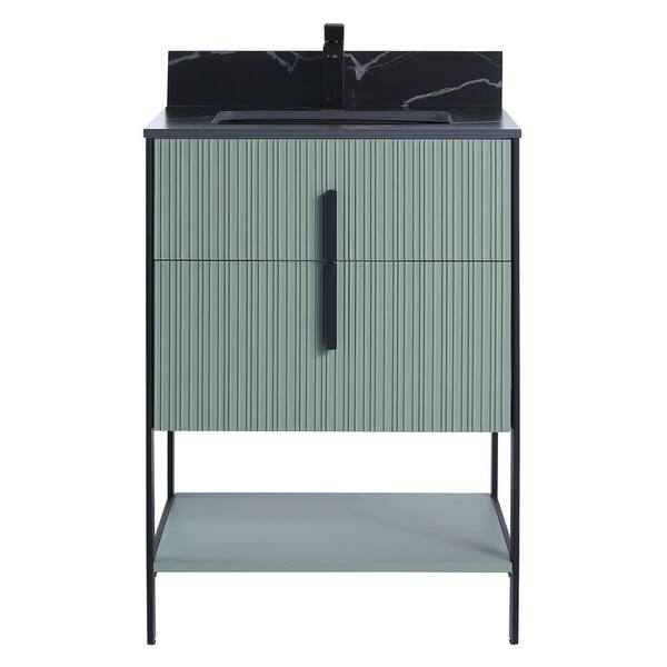 24 in. W x 18 in. D x 33.5 in. H Mint Green Bath Vanity with Black Sintered Stone Top with Black Hardware