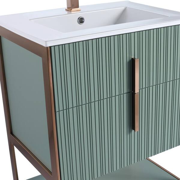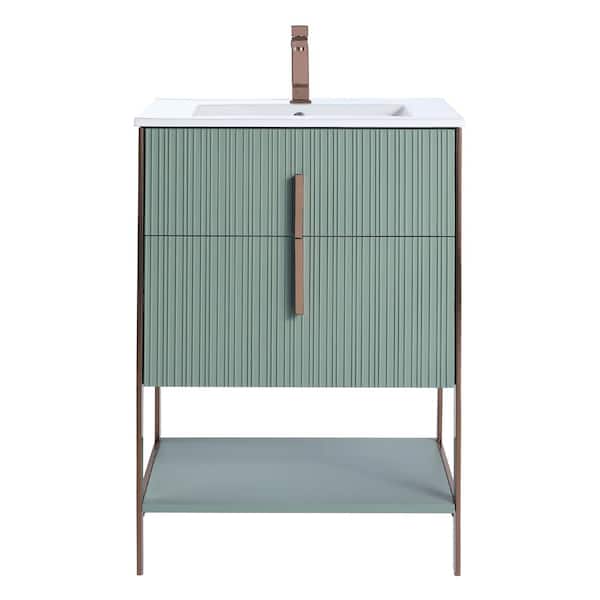 24 in. W x 18 in. D x 33.5 in. H Mint Green Bath Vanity with Ceramic Sink Top in White with Rose Gold Hardware