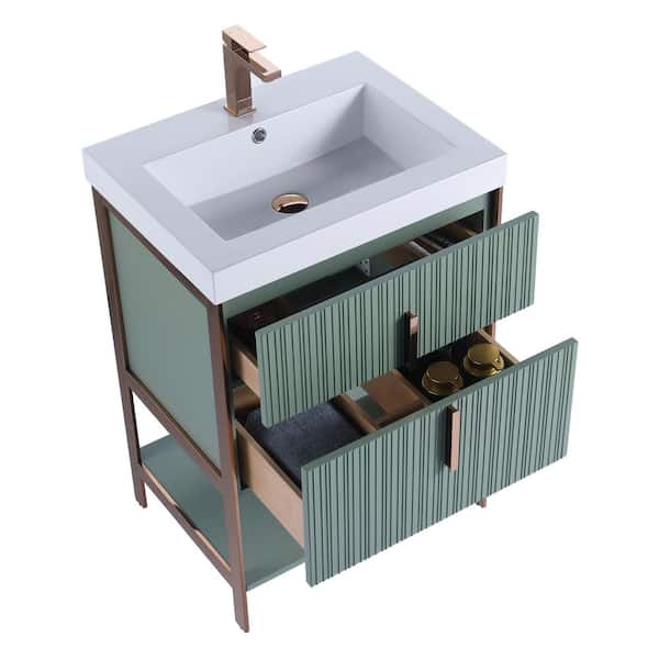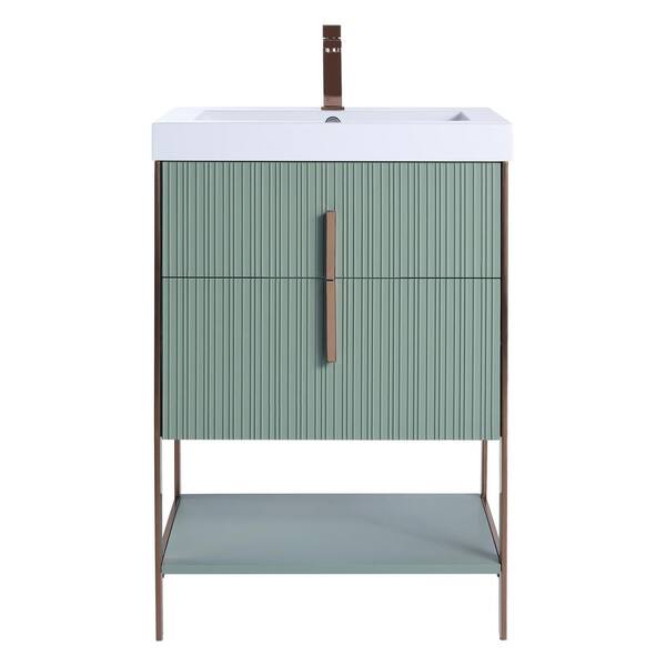 24 in. W x 18 in. D x 33.5 in. H Mint Green Bath Vanity with White Gel Coated Acrylic Top with Rose Gold Hardware