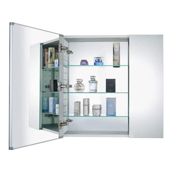30 in. W x 30 in. H Rectangular Recessed or Surface Wall Mount Medicine Cabinet with Mirror in Stainless Steel
