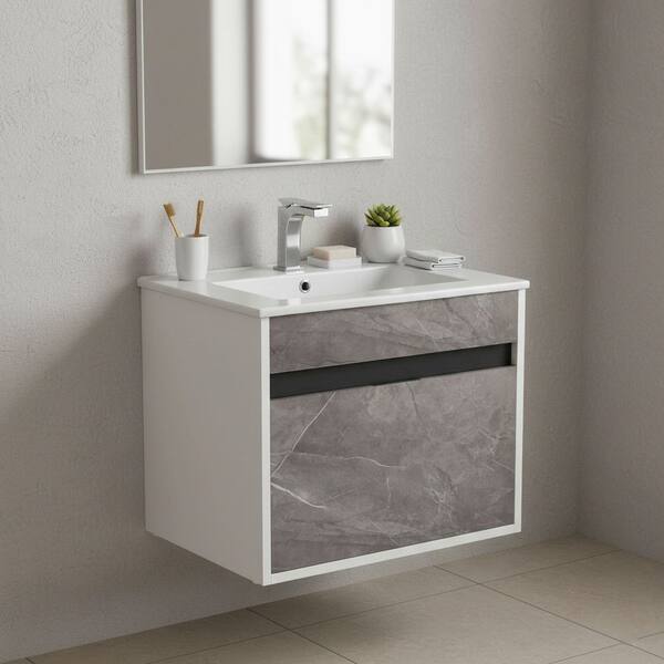 Alpine 20 in. W x 18.11 in. D x 19.75 in. H Bathroom Vanity Side Cabinet in Slate Gray Marble with White Ceramic Top