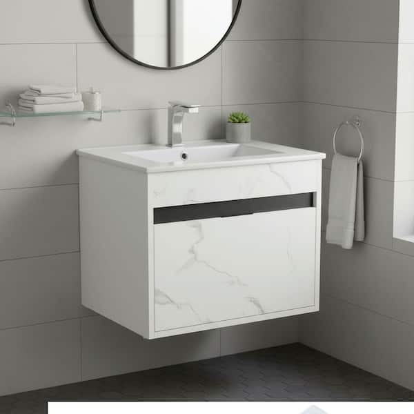 Alpine 24 in. W x 18.11 in. D x 19.75 in. H Bathroom Vanity Side Cabinet in White Marble with White Ceramic Top