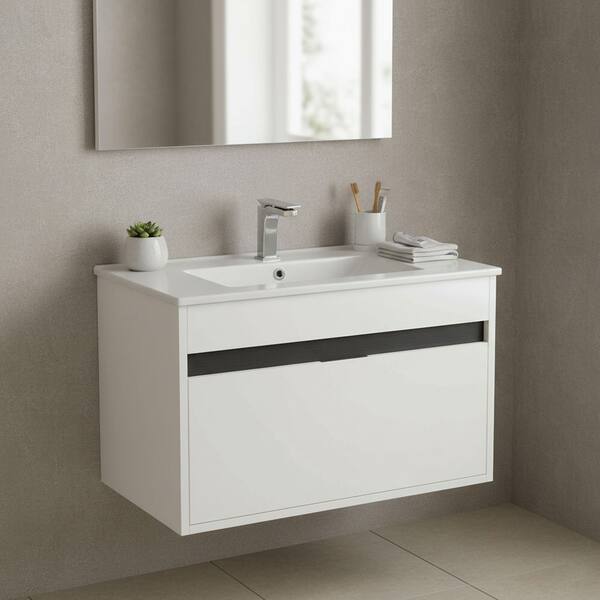 Alpine 30 in. W x 18.11 in. D x 19.75 in. H Bathroom Vanity Side Cabinet in White Matte with White Ceramic Top