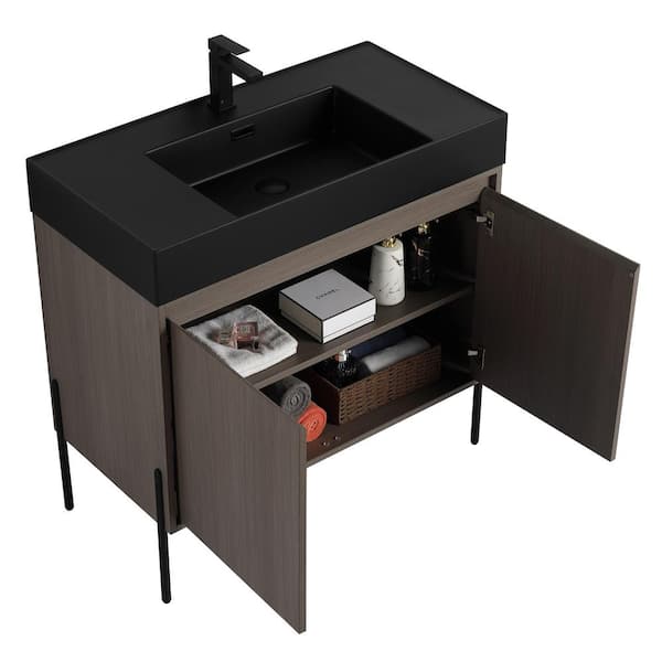Crownpoint 36 in. Freestanding Single Gray Oak Bathroom Vanity with Black Acrylic Sink Top Unassembled