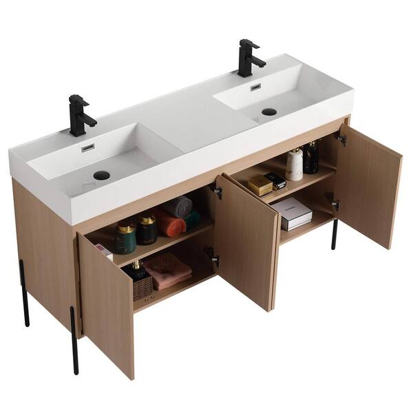 Crownpoint 60 in. Freestanding Double White Oak Bathroom Vanity with White Acrylic Sink Top Unassembled