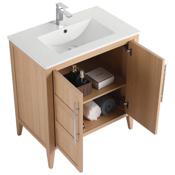 Leafside 30 in. Freestanding Sand Oak Bath Vanity with White Ceramic Sink Top Assembled