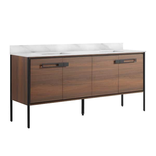 Oakville 72 in. W x 20.5 in. D x 33.5 in. H Bath Vanity in Walnut Ebony with White Ceramic Top
