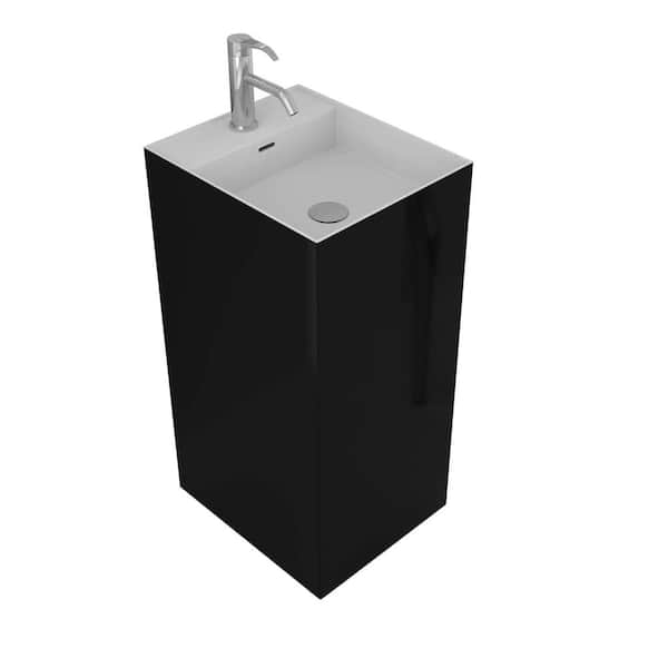 Springhill 15 in. W x 17.75 in. L Modern Black Matte Marble Pedestal Sink and Basin Combo with Overflow