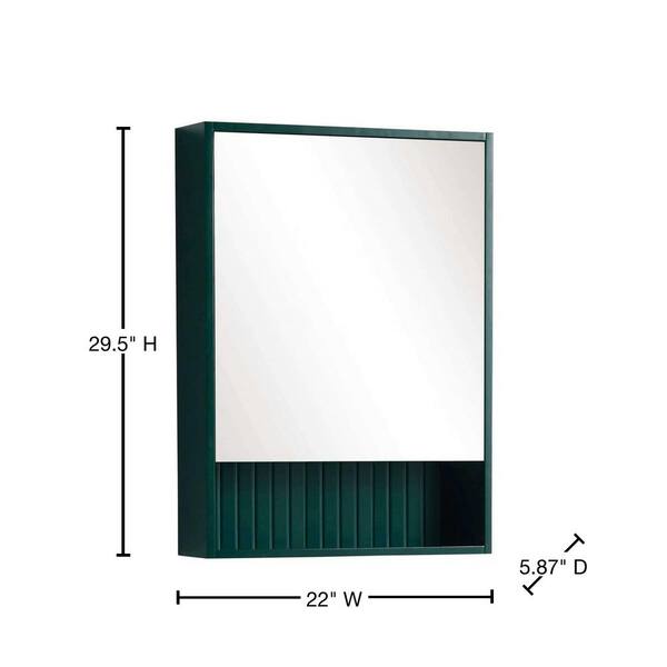 Venezian 22 in. W x 29.5 in. H Small Rectangular Green Wooden Surface Mount Medicine Cabinet with Mirror