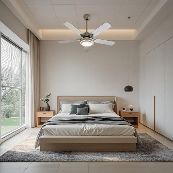 48 in. Indoor Integrated LED Ceiling Fan 5-Blades Brushed Nickel with Remote Control and DC Reversible Motor Included