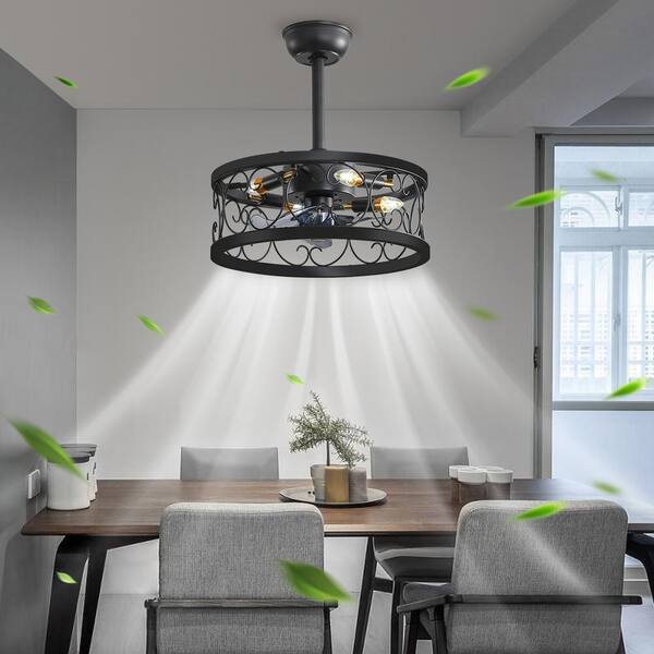 18 in. Indoor/Outdoor Round Retro Matte Black Metal Frame Ceiling Fan with Light Bulb and Remote Control