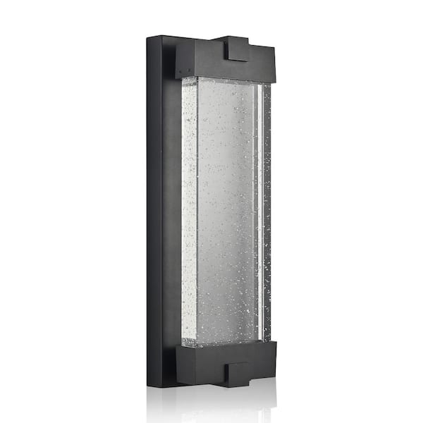 19.3 in. Black Aluminum Finish Outdoor Bubble Crystal Glass LED Light Wall Scone, (1-Pack)