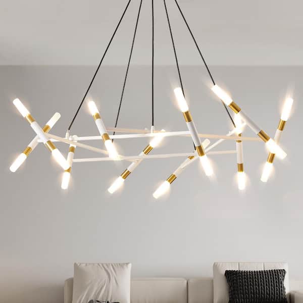 20 Light Adjustable Height White Modern Branch Chandelier for Living Room (Bulb Not Included)