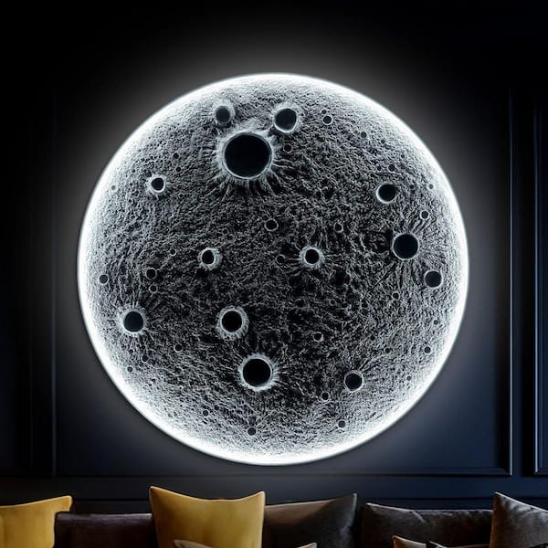 40 in. 1-Light 3D Embossed Moon Pattern White Plug-In Dimmable LED Wall Sconce with 3-Color Temperature and Remote