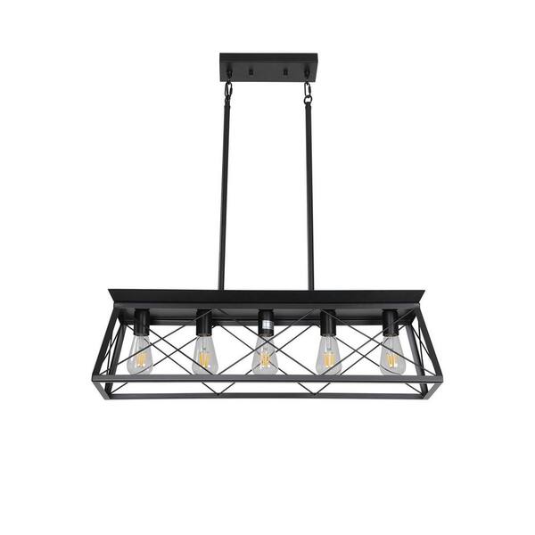 5-Light Black Metal Geometric Farmhouse Chandelier Fixture for Kitchen Island with Rustic Rectangle Frame