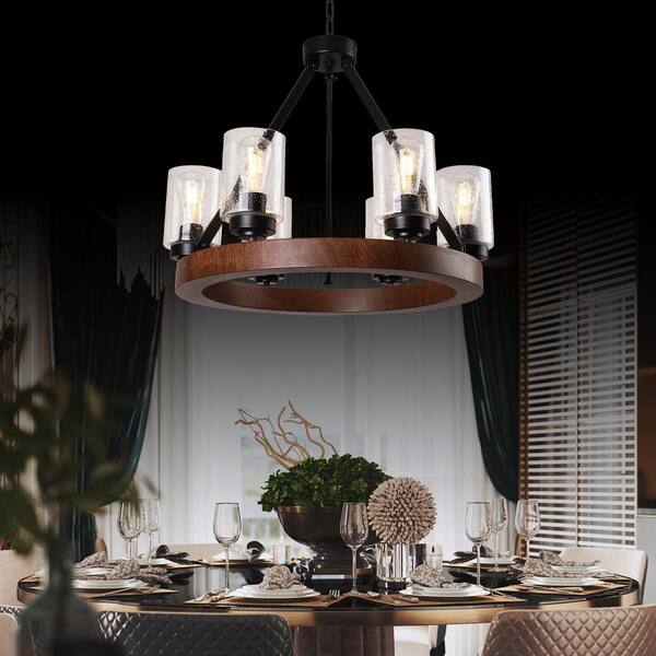 • Adjustable 25.2 in. chandelier with rustic wood & black finish