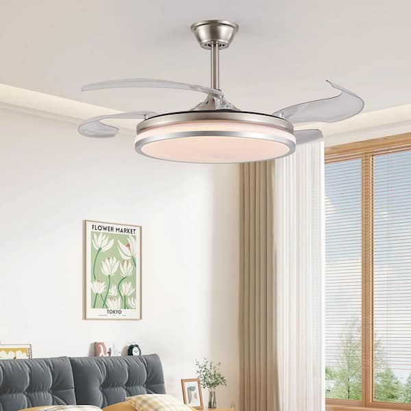 Modern 42 in. Smart Indoor Brush Nickel Retractable Blades Ceiling Fan with Integrated LED Light Kit and Remote Control