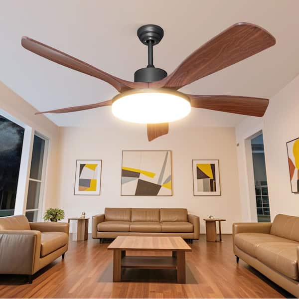 Noiseless 52 in. Smart Indoor Black Ceiling Fan with LED Light Kit Reversible DC and APP/Remote Controls
