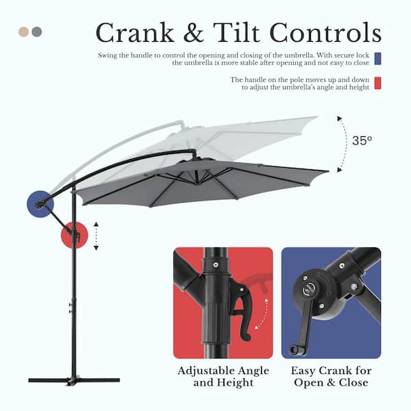 10FT Patio Umbrellas, 8 Ribs, UV Protection for Pool Garden Backyard Market in Grey