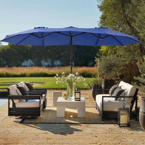 15ft Large Patio Umbrella with Base Included, Rectangle Table Umbrella Outdoor Patio, Outside Umbrellas in Blue
