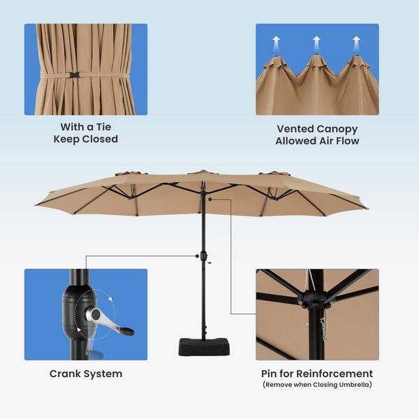 15ft Large Patio Umbrella with Base Included, Rectangle Table Umbrella Outdoor Patio, Outside Umbrellas in Khaki