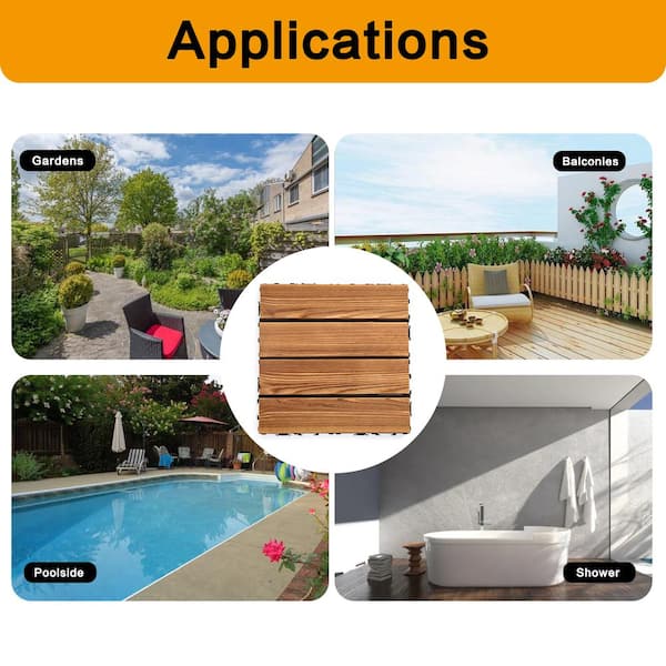 12 in. x 12 in. Plastic DIY wood-plastic carbonized/simulated lawn Interlocking Deck Tiles, Outdoor Patio Floor(44-Pack)