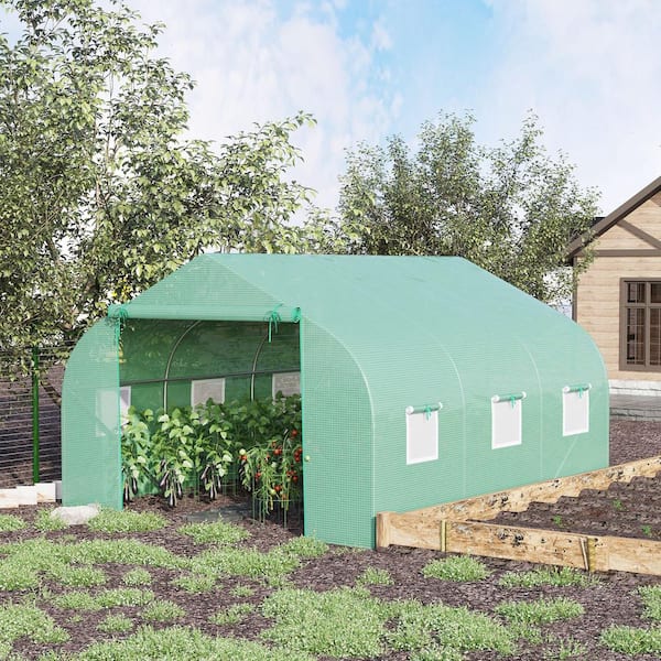 12' x 10' x 7' Outdoor Heavy Duty Steel Frame Walk-in & Tunnel Greenhouse, with Roll-up Windows, Zippered Door