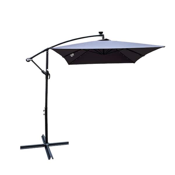 120 * 78 * 98in Outdoor Patio Umbrella with Crank Handle and Cross Base Solar Powered LED Light Illumination, Anthracite