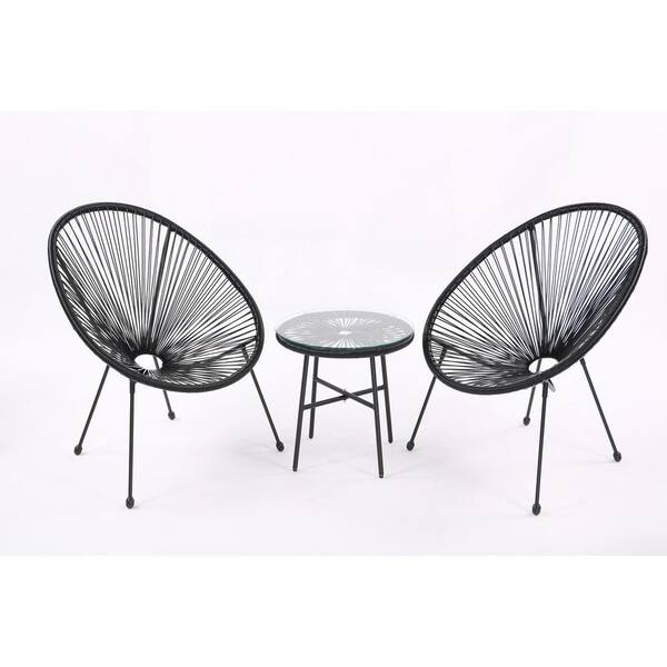 3-Piece PE Rattan Patio Nook Conversation Set with Side Table for Garden, Backyard, Balcony or Poolside (Black)