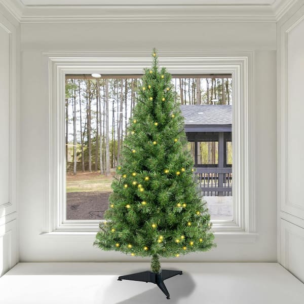 4 ft. Pre-Lit Artificial Christmas Tree with Stand, 100 Warm White LEDs, Realistic 241 Branches PVC Green