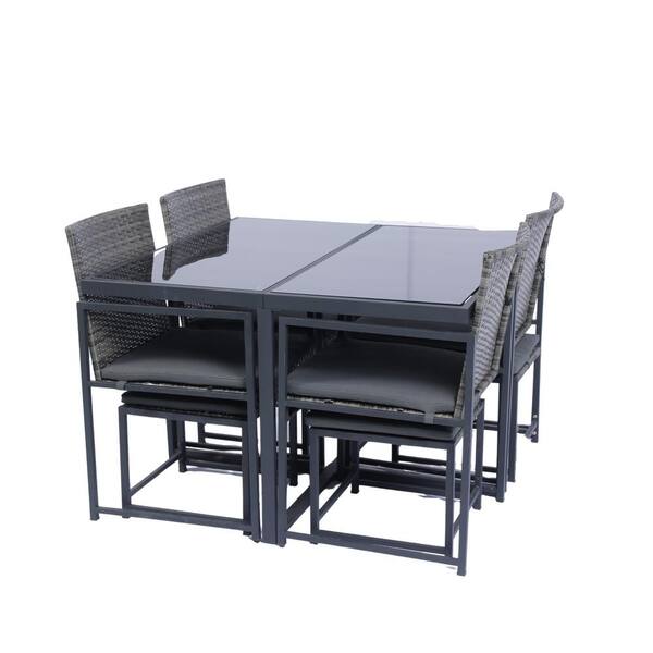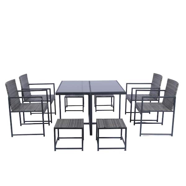 9-Piece Grey Wicker Outdoor Patio Sectional Conversation Set with Dark Grey Cushions