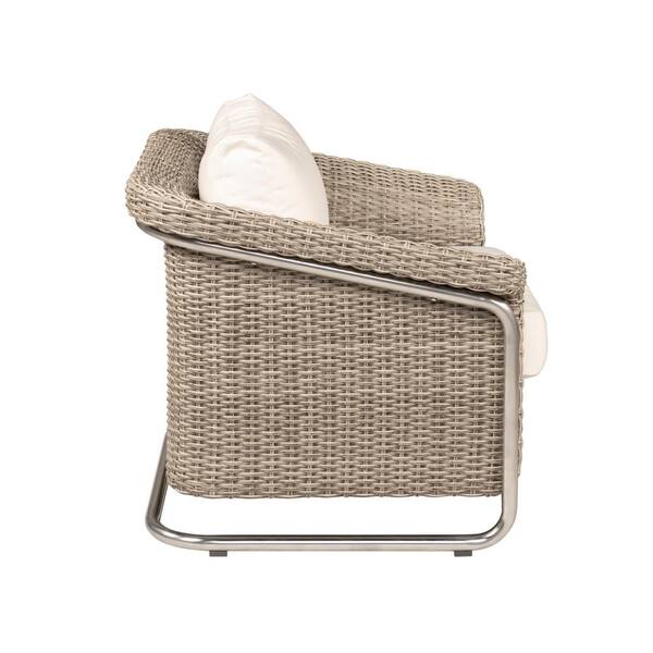 Vista Outdoor Wicker Accent Chair with Sunbrella Fabric Cushion in Beige