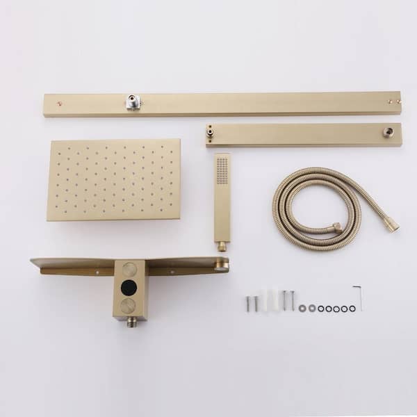 1-spray 11 in. Temperature Display Dual Shower Head and Handheld Shower Head Exposed Pipe Shower System in Brushed Gold