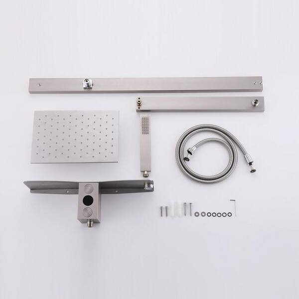 1-spray 11 in. Temperature Display Shower Head and Handheld Shower Head Exposed Pipe Shower Head Set in Brushed Nickel