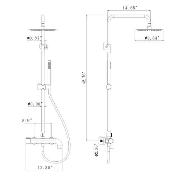 2 Handle 1-Spray Exposed Pipe Tub and Shower Faucet 1.8 GPM Wall Mount Shower System in Polished Chrome Valve Included
