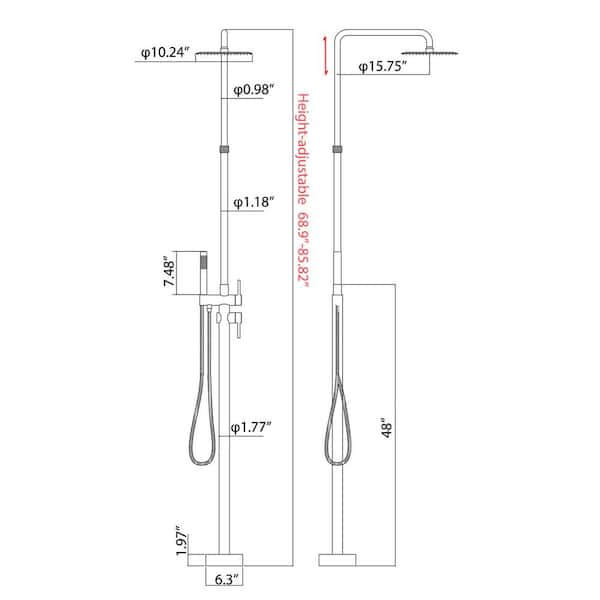 2 Handle 1-Spray Freestanding Outdoor Shower Faucet Kit with Hand Shower 1.8 GPM Outside Shower Fixture in Matte Black