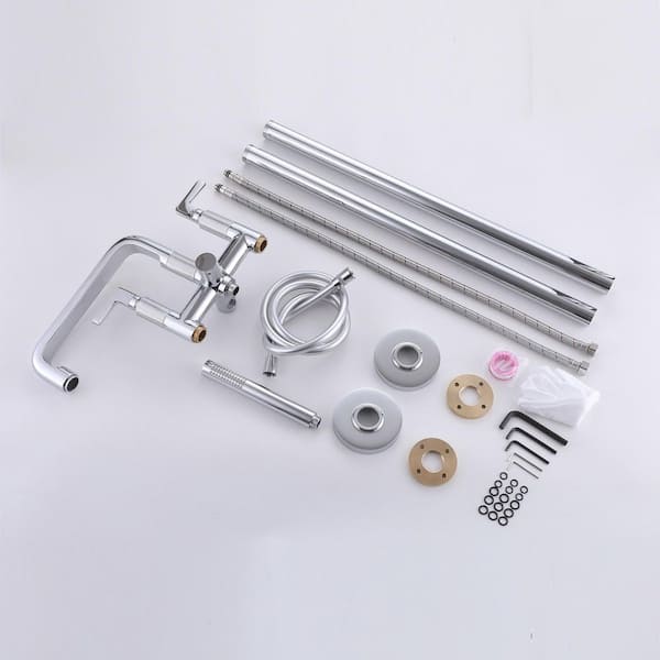 2-Handle Freestanding Tub Faucet with Hand Shower 2 Holes Floor Mount Bathtub Filler wirh Sprayer in. Polished Chrome