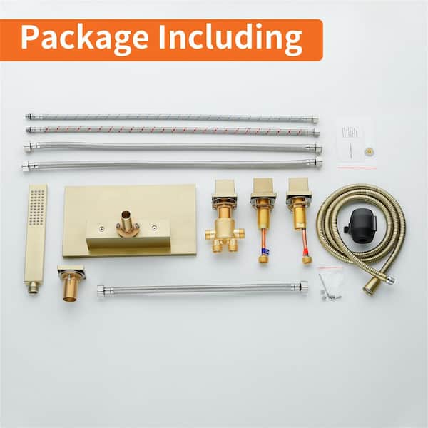 3-Handle Deck Mount Roman Tub Faucet with Handheld Shower Brass Waterfall Bath Tub Filler with Sprayer in. Brushed Gold