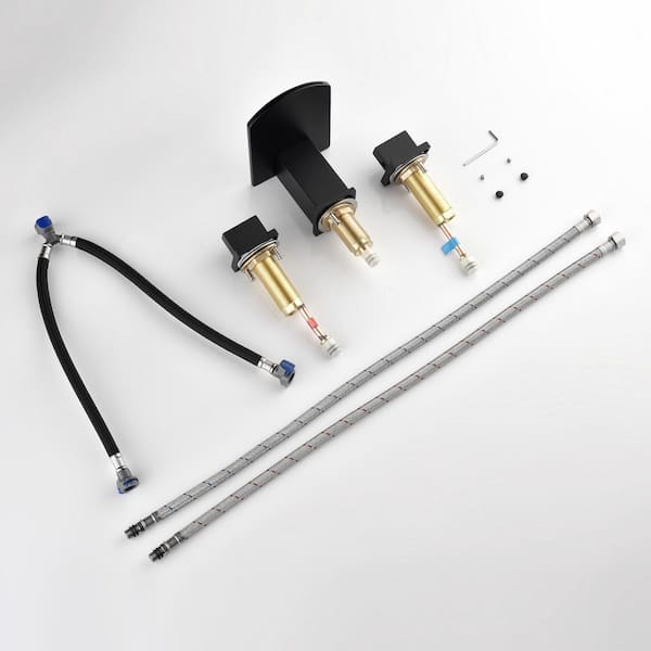 8 in. Widespread Double Handle Bathroom Faucet 3 Hole Modern Brass Sink Basin Vanity Taps in Matte Black