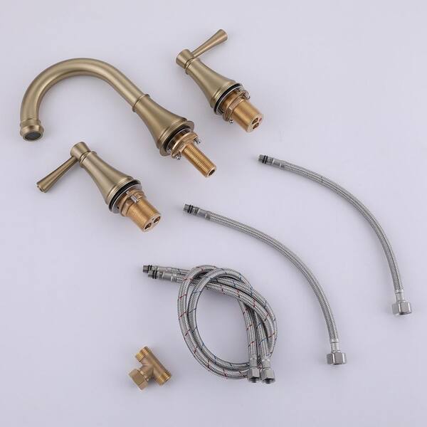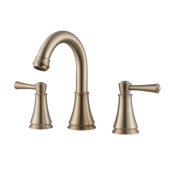 8 in. Widespread Double Handle Bathroom Faucet with 360 Degree Swivel Brass 3 Holes Bathroom Sink Taps in Brushed Gold