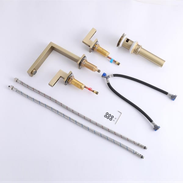 8 in. Widespread Double Handle Bathroom Faucet with Pop-up Drain Kit Brass 3 Hole Sink Basin Vanity Taps in Brushed Gold