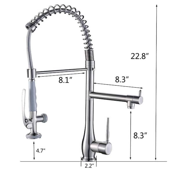 Double Handle Deck Mount Commercial Pull Down Kitchen Faucet with Sprayer Modern Brass Taps in Brushed Nickel